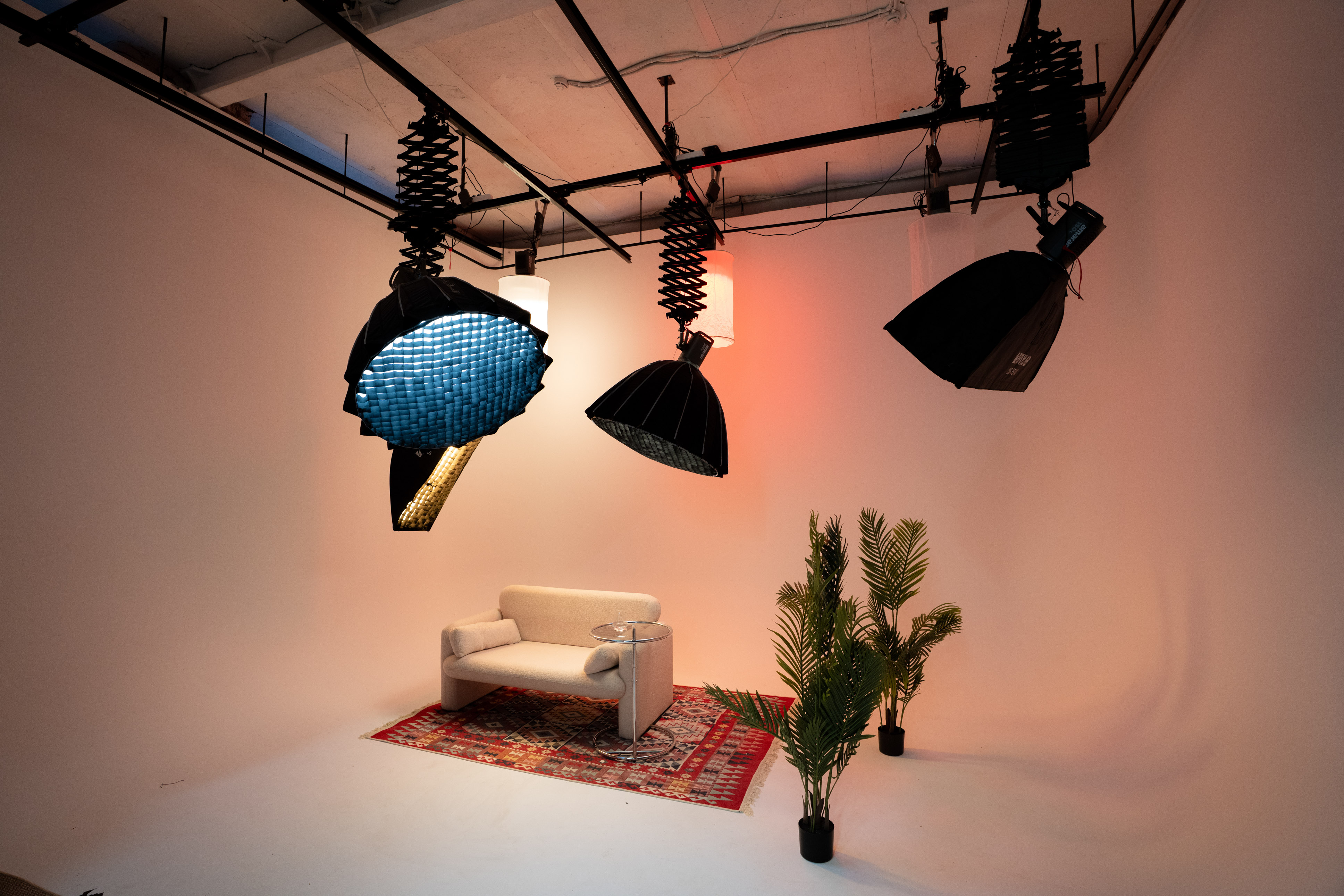 Три источника света, стол, два стула и доступ ко всей инфраструктуре: циклорама, бар, интернет, техподдержка.